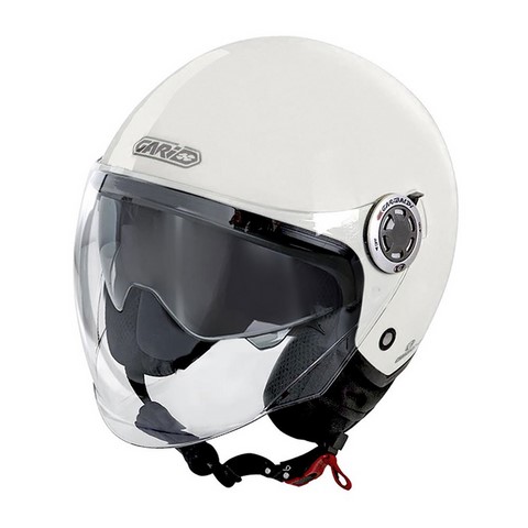Este controle de viseira de fumaça permite a operação da viseira de sol puxando para cima/baixo a alça no lado esquerdo do capacete.