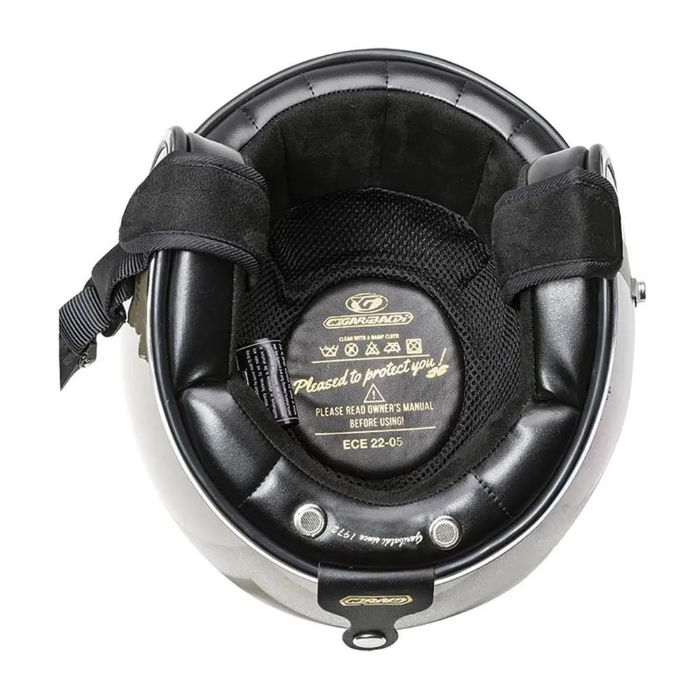 Um capacete de fibra de vidro de estilo retrô com forro em cor de contraste, o G02X é um capacete aberto que se estende para baixo para fornecer cobertura total das orelhas e se destaca por sua leveza, ajuste e conforto.